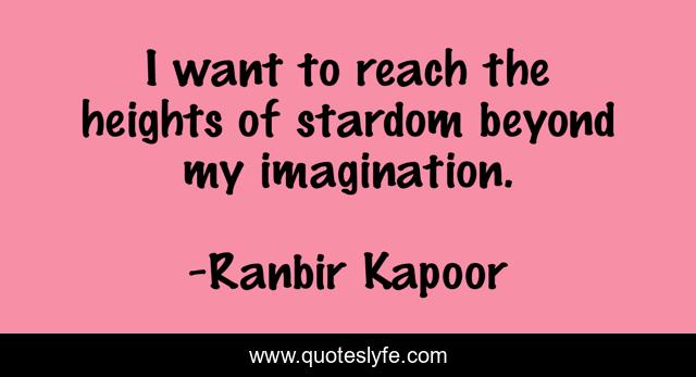 This page presents the quote "I want to reach the heights of stardom beyond my imagination.". Author of this quote is Ranbir Kapoor. This quote is about reach, heights,.
