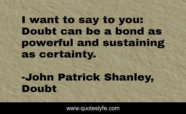 This page presents the quote "I want to say to you: Doubt can be a bond as powerful and sustaining as certainty.". Author of this quote is John Patrick Shanley, Doubt. .