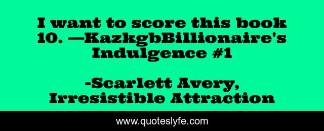 This page presents the quote "I want to score this book 10. —KazkgbBillionaire's Indulgence #1". Author of this quote is Scarlett Avery, Irresistible Attraction. This quote is about romance, billionaire, erotic-romance, hea, alpha-males,.