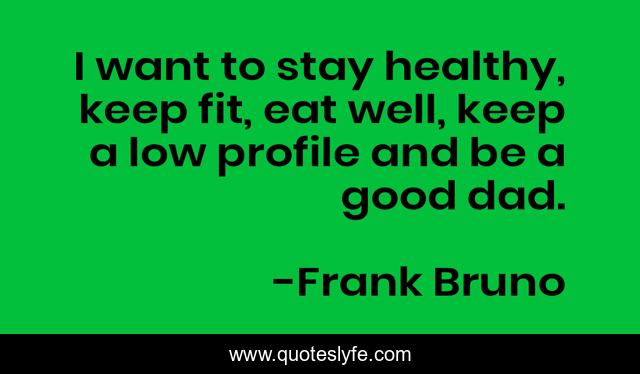 This page presents the quote "I want to stay healthy, keep fit, eat well, keep a low profile and be a good dad.". Author of this quote is Frank Bruno. This quote is about healthy, good,.