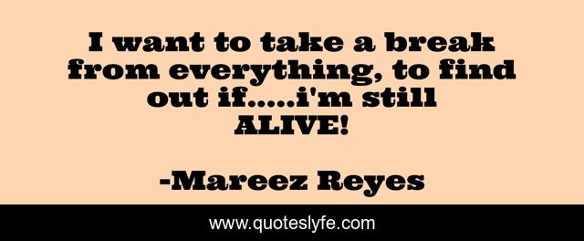This page presents the quote "I want to take a break from everything, to find out if.....i'm still ALIVE!". Author of this quote is Mareez Reyes. .