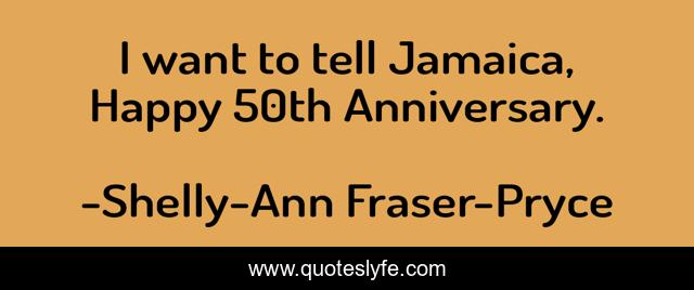 This page presents the quote "I want to tell Jamaica, Happy 50th Anniversary.". Author of this quote is Shelly-Ann Fraser-Pryce. This quote is about jamaica, happy,.