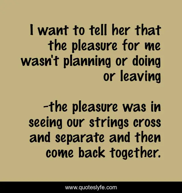 "the pleasure was in seeing our strings cross and separate and then come back together. Quotes." Quoteslyfe.com, 2025. Fri. 05 Dec. 2025. <https://www.quoteslyfe.com/quote/I-want-to-tell-her-that-the-241148>.