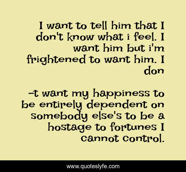 "t want my happiness to be entirely dependent on somebody else's to be a hostage to fortunes I cannot control. Quotes." Quoteslyfe.com, 2025. Sat. 06 Dec. 2025. <https://www.quoteslyfe.com/quote/I-want-to-tell-him-that-I-123489>.