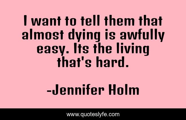 This page presents the quote "I want to tell them that almost dying is awfully easy. Its the living that's hard.". Author of this quote is Jennifer Holm. This quote is about living, dying,.
