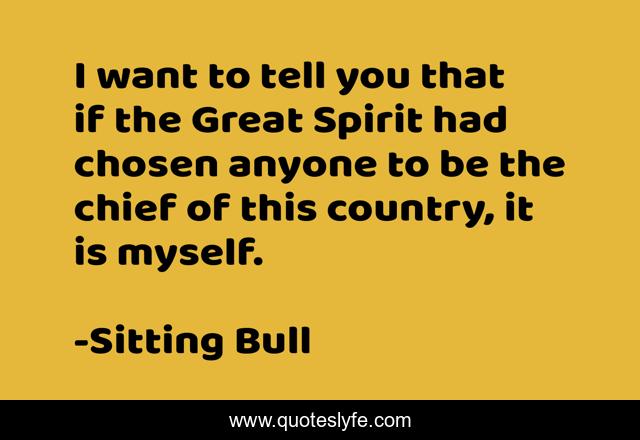 This page presents the quote "I want to tell you that if the Great Spirit had chosen anyone to be the chief of this country, it is myself.". Author of this quote is Sitting Bull. This quote is about myself, great,.