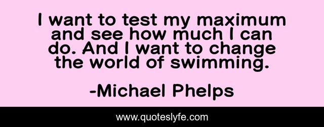 This page presents the quote "I want to test my maximum and see how much I can do. And I want to change the world of swimming.". Author of this quote is Michael Phelps. This quote is about world, change the world,.