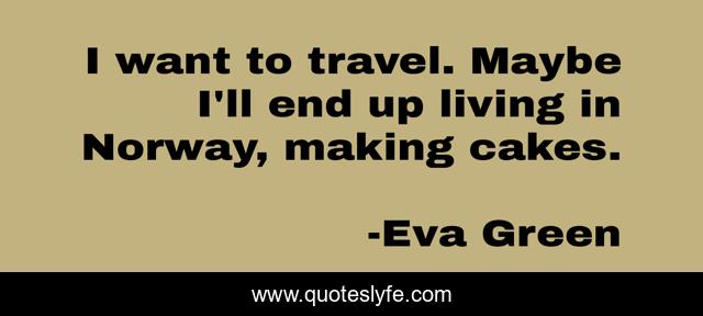 This page presents the quote "I want to travel. Maybe I'll end up living in Norway, making cakes.". Author of this quote is Eva Green. This quote is about living, end,.