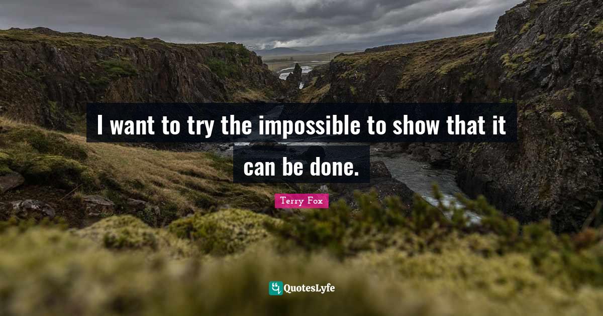 "Terry Fox Quotes." Quoteslyfe.com, 2026. Wed. 14 Jan. 2026. <https://www.quoteslyfe.com/quote/I-want-to-try-the-impossible-to-1098804>.