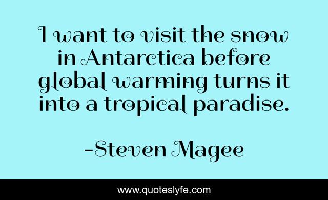 This page presents the quote "I want to visit the snow in Antarctica before global warming turns it into a tropical paradise.". Author of this quote is Steven Magee. This quote is about climate, global, visit, snow, tropical, antarctica, weather, change, paradise,.