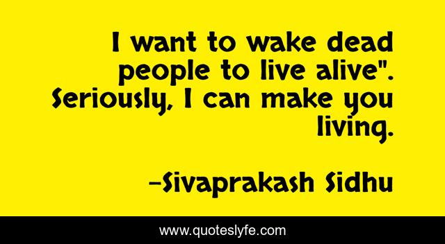 This page presents the quote "I want to wake dead people to live alive". Seriously, I can make you living.". Author of this quote is Sivaprakash Sidhu. This quote is about live-life, life-and-death,.