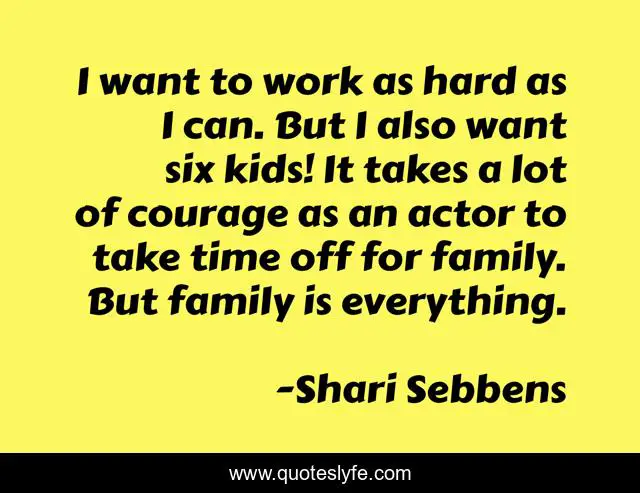 This page presents the quote "I want to work as hard as I can. But I also want six kids! It takes a lot of courage as an actor to take time off for family. But family is everything.". Author of this quote is Shari Sebbens. This quote is about work, family, time,.
