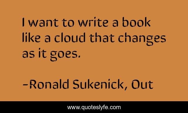 This page presents the quote "I want to write a book like a cloud that changes as it goes.". Author of this quote is Ronald Sukenick, Out. This quote is about like, i, it, write, to, as, book, goes, changes,.