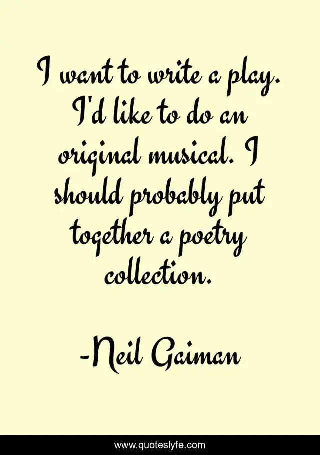 This page presents the quote "I want to write a play. I'd like to do an original musical. I should probably put together a poetry collection.". Author of this quote is Neil Gaiman. This quote is about play, together,.