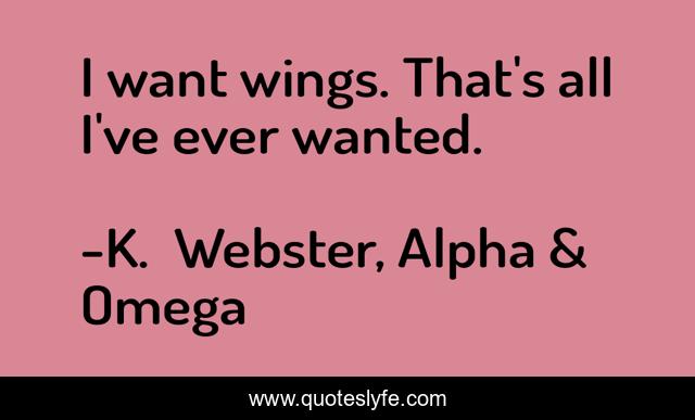 This page presents the quote "I want wings. That's all I've ever wanted.". Author of this quote is K. Webster, Alpha & Omega. This quote is about alpha, angel-and-demon-love, angels, paranormal-romance-series, alpha-and-omega,.