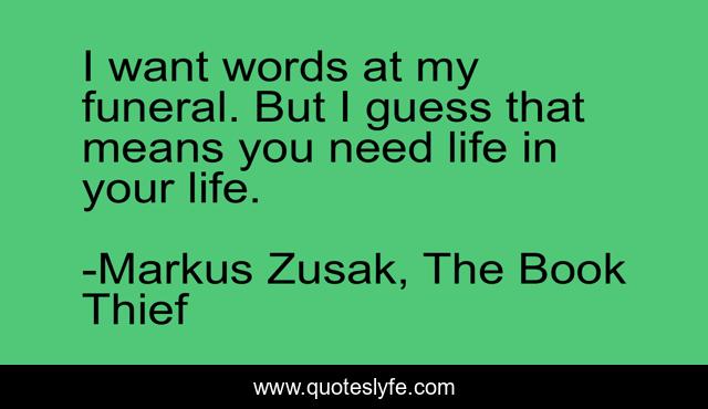 "Markus Zusak, The Book Thief Quotes." Quoteslyfe.com, 2025. Mon. 08 Dec. 2025. <https://www.quoteslyfe.com/quote/I-want-words-at-my-funeral-But-2244>.