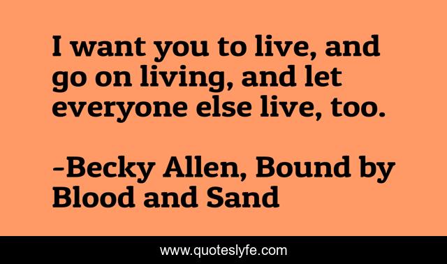 This page presents the quote "I want you to live, and go on living, and let everyone else live, too.". Author of this quote is Becky Allen, Bound by Blood and Sand. .