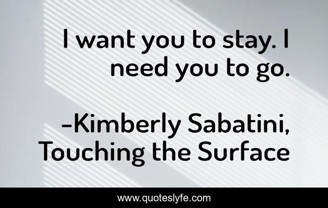 "Kimberly Sabatini, Touching the Surface Quotes." Quoteslyfe.com, 2025. Sun. 07 Dec. 2025. <https://www.quoteslyfe.com/quote/I-want-you-to-stay-I-need-240133>.