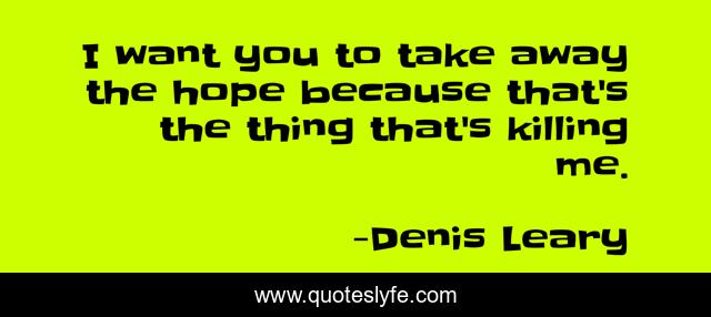 This page presents the quote "I want you to take away the hope because that's the thing that's killing me.". Author of this quote is Denis Leary. .