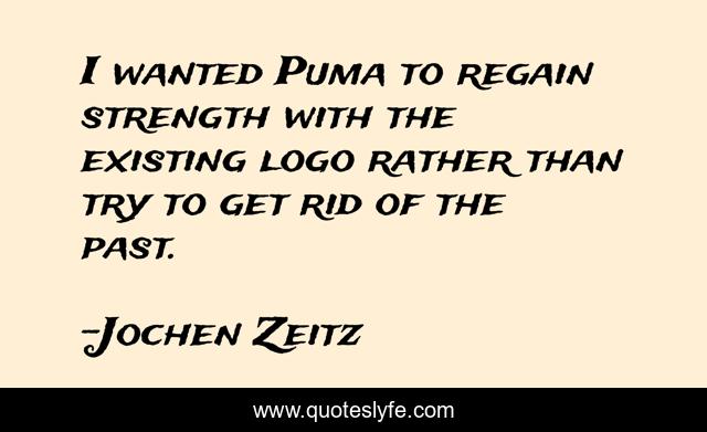 This page presents the quote "I wanted Puma to regain strength with the existing logo rather than try to get rid of the past.". Author of this quote is Jochen Zeitz. This quote is about past, try, rid,.