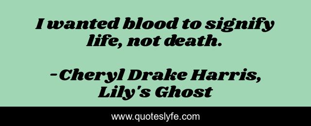 "Cheryl Drake Harris, Lily's Ghost Quotes." Quoteslyfe.com, 2025. Fri. 05 Dec. 2025. <https://www.quoteslyfe.com/quote/I-wanted-blood-to-signify-life-not-247786>.