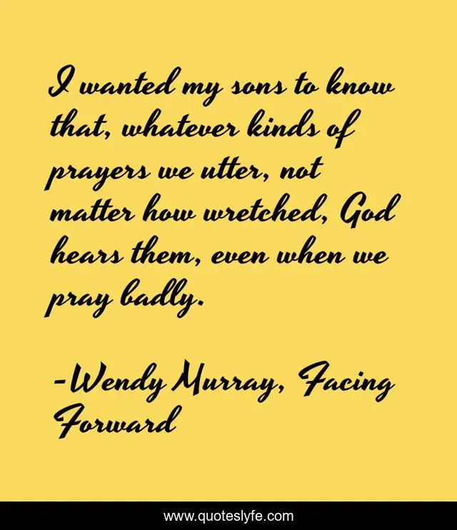 This page presents the quote "I wanted my sons to know that, whatever kinds of prayers we utter, not matter how wretched, God hears them, even when we pray badly.". Author of this quote is Wendy Murray, Facing Forward. .