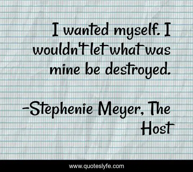 This page presents the quote "I wanted myself. I wouldn't let what was mine be destroyed.". Author of this quote is Stephenie Meyer, The Host. This quote is about myself, mine, destruction,.