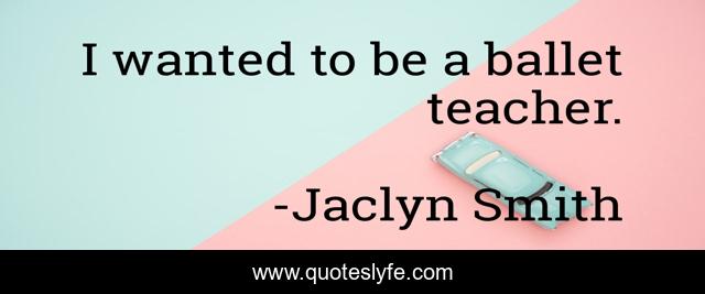 This page presents the quote "I wanted to be a ballet teacher.". Author of this quote is Jaclyn Smith. This quote is about ballet, wanted,.