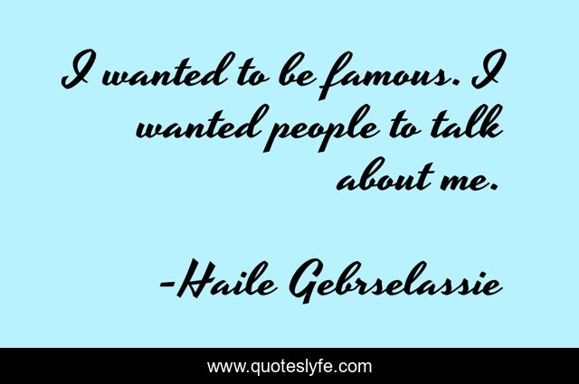 This page presents the quote "I wanted to be famous. I wanted people to talk about me.". Author of this quote is Haile Gebrselassie. This quote is about me, talk, people,.