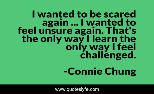 This page presents the quote "I wanted to be scared again ... I wanted to feel unsure again. That's the only way I learn the only way I feel challenged.". Author of this quote is Connie Chung. This quote is about success, happiness,.