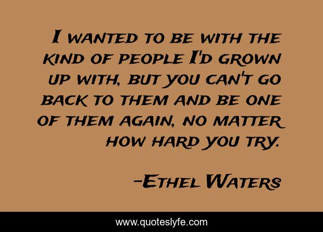 This page presents the quote "I wanted to be with the kind of people I'd grown up with, but you can't go back to them and be one of them again, no matter how hard you try.". Author of this quote is Ethel Waters. This quote is about try, people,.