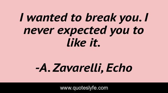 This page presents the quote "I wanted to break you. I never expected you to like it.". Author of this quote is A. Zavarelli, Echo. This quote is about dark, love, twisted, romance, addiction, obsession, affection,.