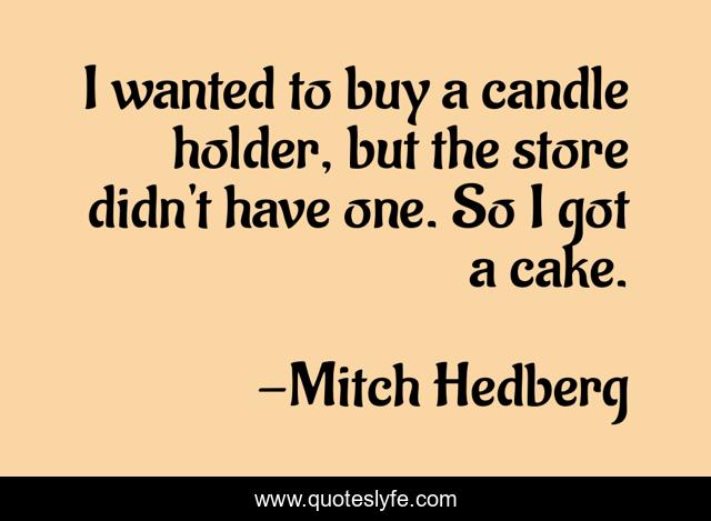 This page presents the quote "I wanted to buy a candle holder, but the store didn't have one. So I got a cake.". Author of this quote is Mitch Hedberg. This quote is about cake, candle, buy,.