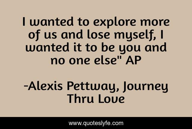 This page presents the quote "I wanted to explore more of us and lose myself, I wanted it to be you and no one else" AP". Author of this quote is Alexis Pettway, Journey Thru Love. .