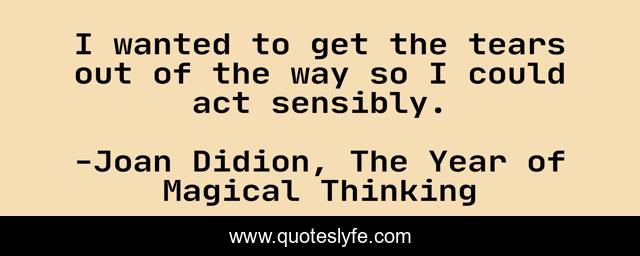 This page presents the quote "I wanted to get the tears out of the way so I could act sensibly.". Author of this quote is Joan Didion, The Year of Magical Thinking. This quote is about sensibility, tears,.