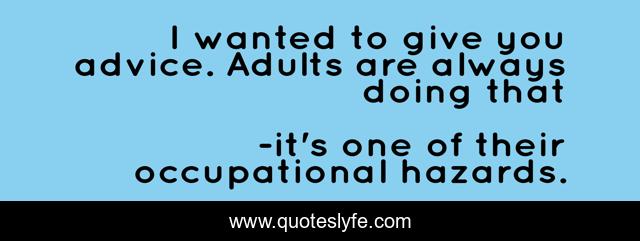 This page presents the quote "I wanted to give you advice. Adults are always doing that". Author of this quote is it's one of their occupational hazards.. .