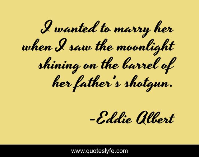 This page presents the quote "I wanted to marry her when I saw the moonlight shining on the barrel of her father's shotgun.". Author of this quote is Eddie Albert. .