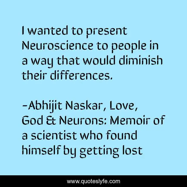 "Abhijit Naskar, Love, God & Neurons: Memoir of a scientist who found himself by getting lost Quotes." Quoteslyfe.com, 2025. Tue. 09 Dec. 2025. <https://www.quoteslyfe.com/quote/I-wanted-to-present-Neuroscience-to-people-58231>.