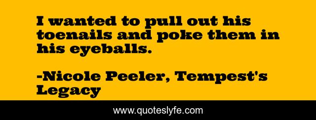 "Nicole Peeler, Tempest's Legacy Quotes." Quoteslyfe.com, 2025. Sat. 06 Dec. 2025. <https://www.quoteslyfe.com/quote/I-wanted-to-pull-out-his-toenails-134135>.