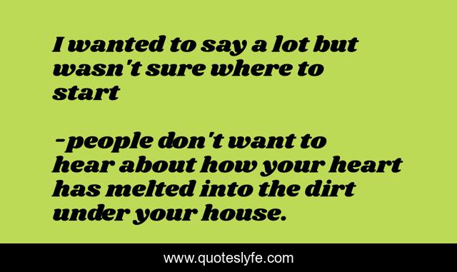 This page presents the quote "I wanted to say a lot but wasn't sure where to start". Author of this quote is people don't want to hear about how your heart has melted into the dirt under your house.. .