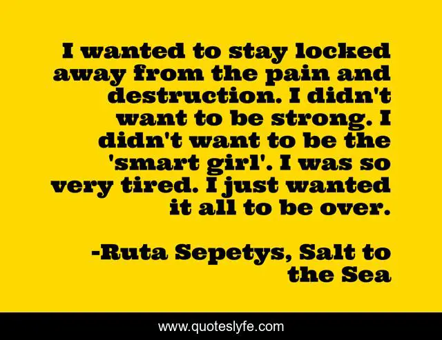 "Ruta Sepetys, Salt to the Sea Quotes." Quoteslyfe.com, 2025. Sat. 06 Dec. 2025. <https://www.quoteslyfe.com/quote/I-wanted-to-stay-locked-away-from-76143>.