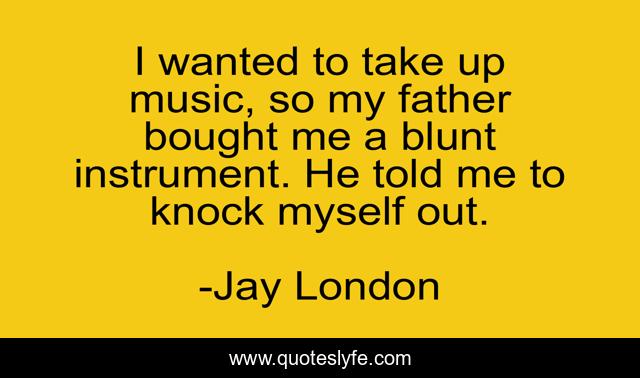 This page presents the quote "I wanted to take up music, so my father bought me a blunt instrument. He told me to knock myself out.". Author of this quote is Jay London. This quote is about music, myself, father,.