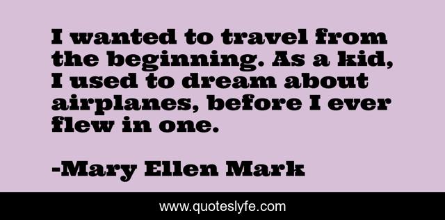 This page presents the quote "I wanted to travel from the beginning. As a kid, I used to dream about airplanes, before I ever flew in one.". Author of this quote is Mary Ellen Mark. This quote is about beginning, dream, kid,.