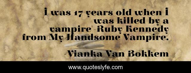 This page presents the quote "I was 17 years old when I was killed by a vampire"-Ruby Kennedy from My Handsome Vampire.". Author of this quote is Vianka Van Bokkem. This quote is about vampire, young-adults, vampires, paranormal-romance,.