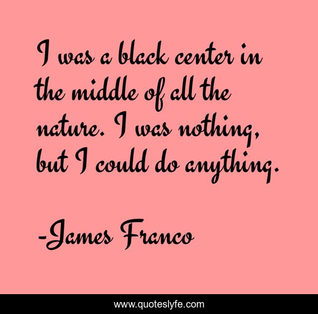 This page presents the quote "I was a black center in the middle of all the nature. I was nothing, but I could do anything.". Author of this quote is James Franco. This quote is about nothing, center, anything, nature,.