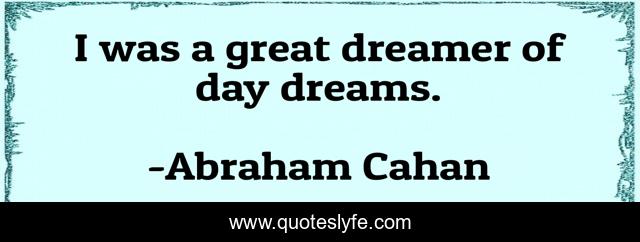This page presents the quote "I was a great dreamer of day dreams.". Author of this quote is Abraham Cahan. This quote is about great, day, dreamer,.