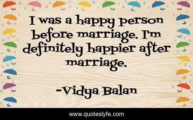 This page presents the quote "I was a happy person before marriage. I'm definitely happier after marriage.". Author of this quote is Vidya Balan. This quote is about person, happy, before,.