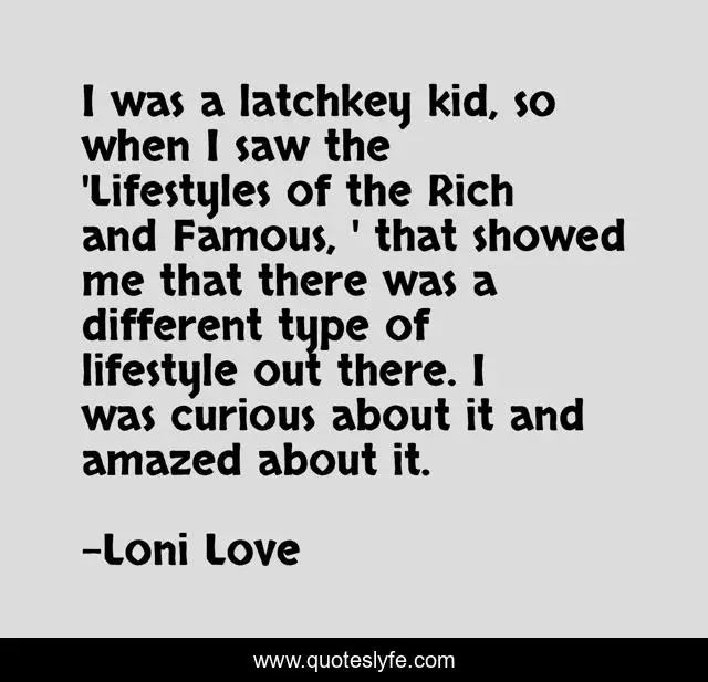 This page presents the quote "I was a latchkey kid, so when I saw the 'Lifestyles of the Rich and Famous, ' that showed me that there was a different type of lifestyle out there. I was curious about it and amazed about it.". Author of this quote is Loni Love. This quote is about me, lifestyle, rich,.