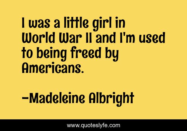 This page presents the quote "I was a little girl in World War II and I'm used to being freed by Americans.". Author of this quote is Madeleine Albright. This quote is about world, girl, little,.