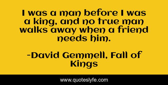This page presents the quote "I was a man before I was a king, and no true man walks away when a friend needs him.". Author of this quote is David Gemmell, Fall of Kings. .